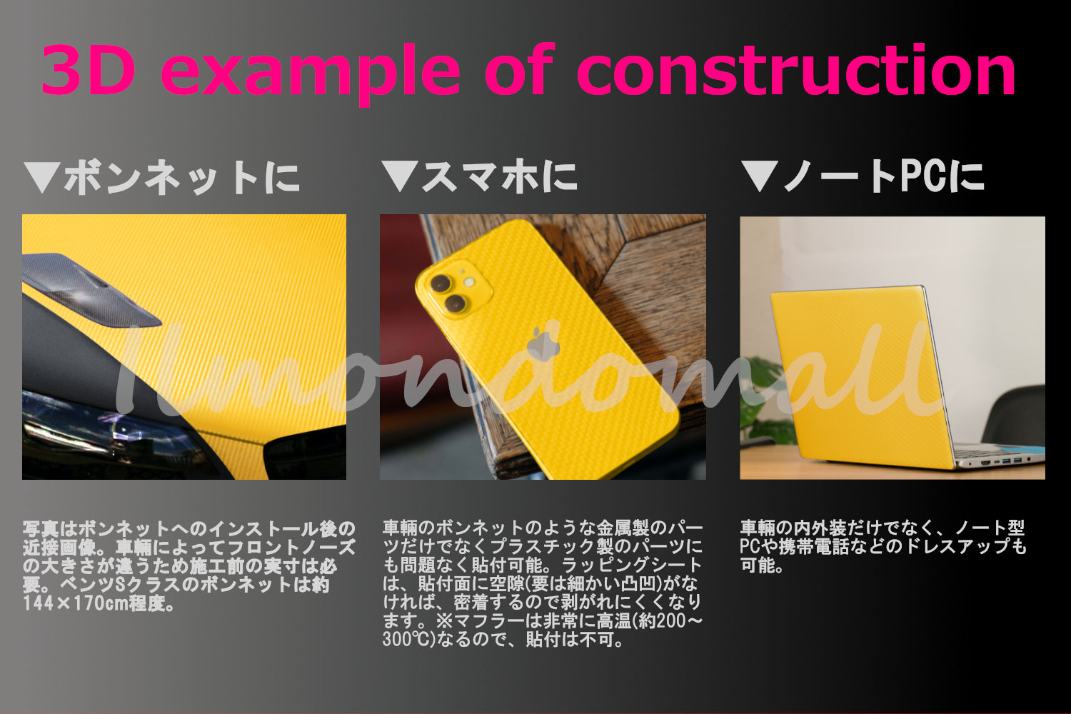 ▼材質:PVC(ポリ塩化ビニール) シートタイプ:3Dカーボン柄のカーラッピングシート。※このラッピングシートは、炭素繊維(carbon)のカーボンシートではなく、ポリ塩化ビニールのリアルカーボンシート(若しくはカーボン調 シート、カーボン調 シール、カーボン調、カーボン フィルム、カーボンシール、カーボンしーと、ラッピングシート カーボン、車用カーボンシート、車カーボンシートのように呼ばれています)になります。カーラッピングシートでは、炭素繊維のシートもありますが、装飾を主とした利用が殆どであるため、ポリ塩化ビニールのシートを便宜上、カーボンシートと呼んでいます。
