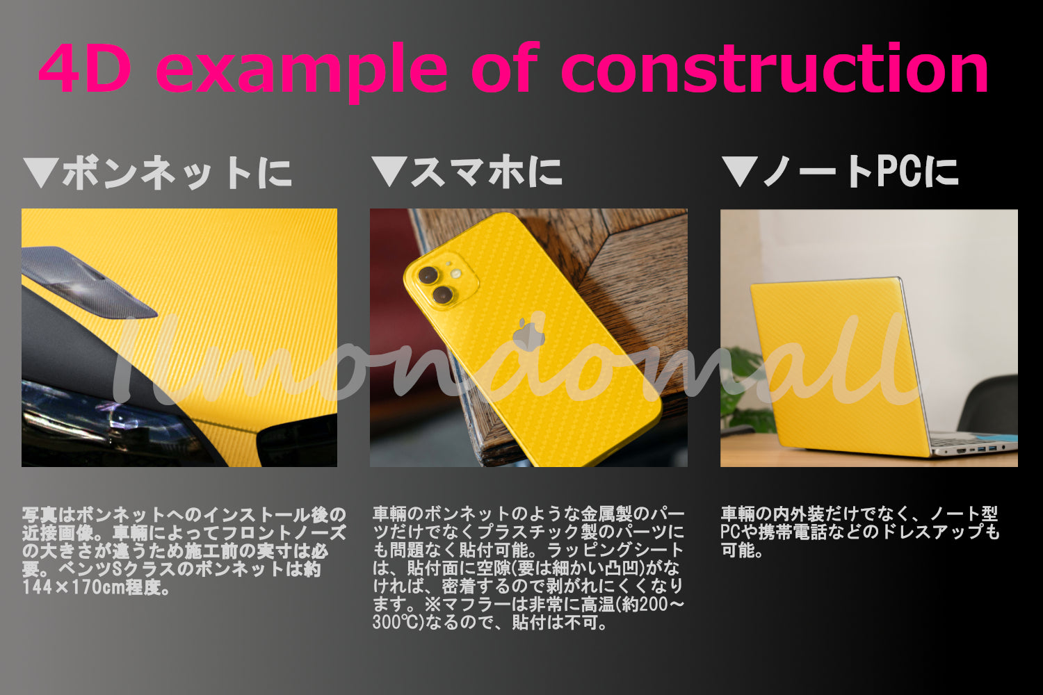 ▼材質:PVC(ポリ塩化ビニール) シートタイプ:4Dカーボン柄のカーラッピングシート。※このラッピングシートは、炭素繊維(carbon)のカーボンシートではなく、ポリ塩化ビニールのリアルカーボンシート(若しくはカーボン調 シート、カーボン調 シール、カーボン調、カーボン フィルム、カーボンシール、カーボンしーと、ラッピングシート カーボン、車用カーボンシート、車カーボンシートのように呼ばれています)になります。カーラッピングシートでは、炭素繊維のシートもありますが、装飾を主とした利用が殆どであるため、ポリ塩化ビニールのシートを便宜上、カーボンシートと呼んでいます。