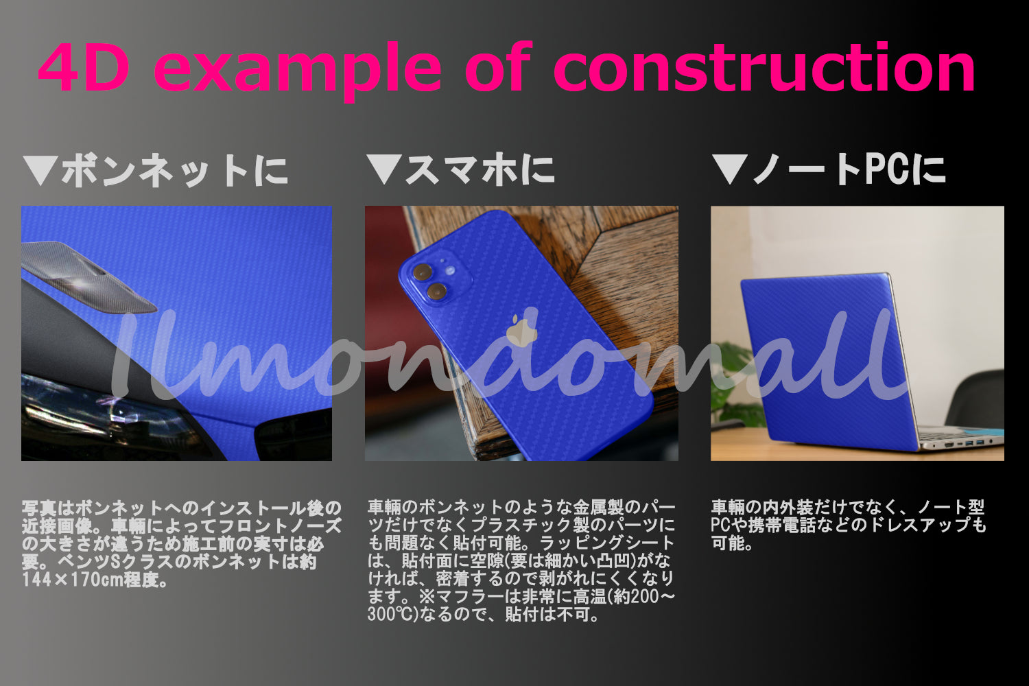 ▼材質:PVC(ポリ塩化ビニール) シートタイプ:4Dカーボン柄のカーラッピングシート。※このラッピングシートは、炭素繊維(carbon)のカーボンシートではなく、ポリ塩化ビニールのリアルカーボンシート(若しくはカーボン調 シート、カーボン調 シール、カーボン調、カーボン フィルム、カーボンシール、カーボンしーと、ラッピングシート カーボン、車用カーボンシート、車カーボンシートのように呼ばれています)になります。カーラッピングシートでは、炭素繊維のシートもありますが、装飾を主とした利用が殆どであるため、ポリ塩化ビニールのシートを便宜上、カーボンシートと呼んでいます。