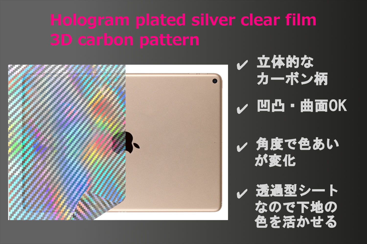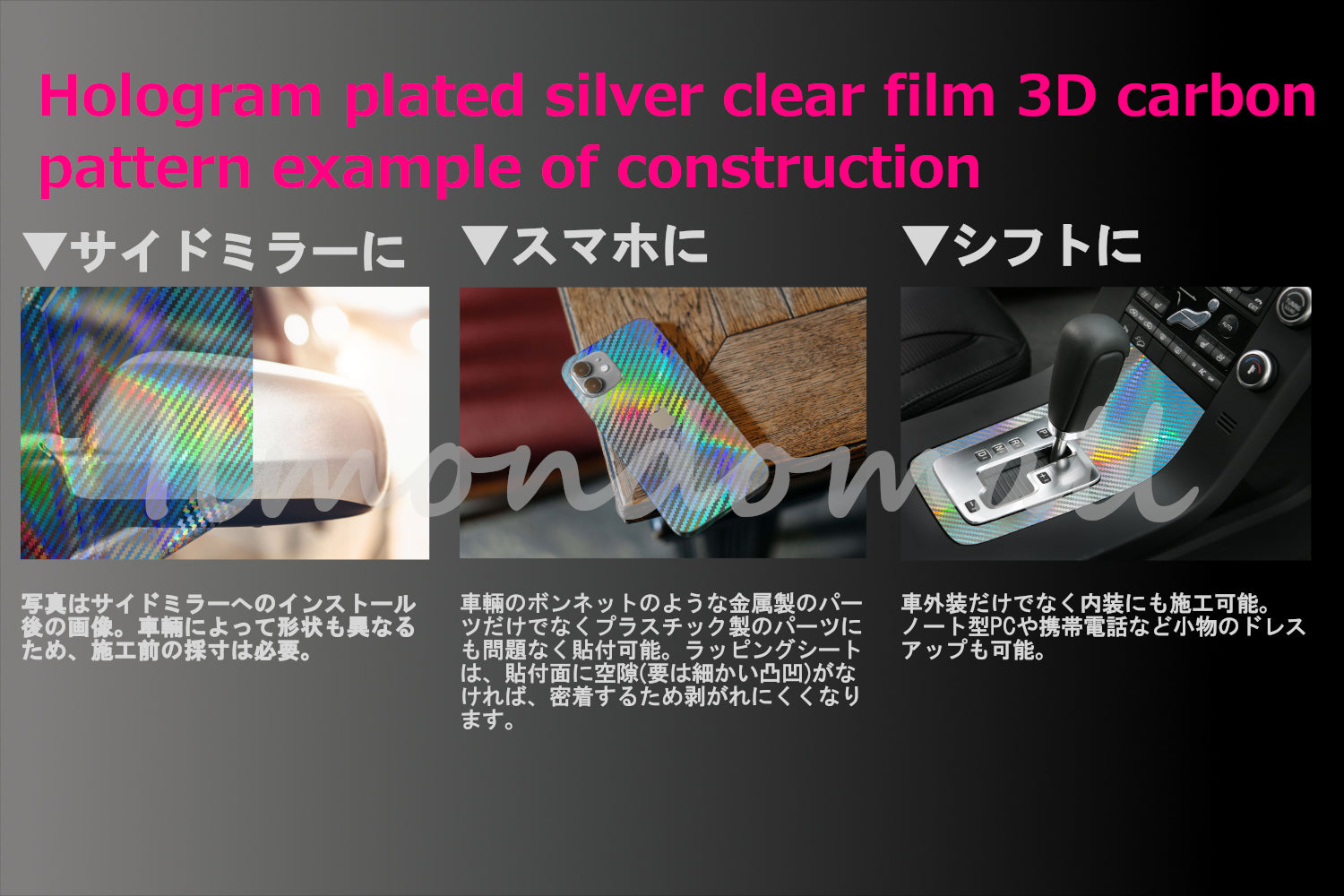 3D柄ホログラム調メッキシルバー クリアフィルム カーボンシート (リアルカーボン調)